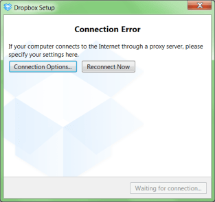 For instance, DropBox would show the dreadfull “Connection Error” dialog shown on the right.
