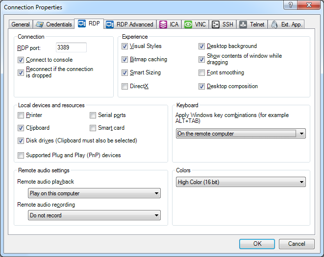 - Set “Apply Windows key combinations” to “On the remote computer”