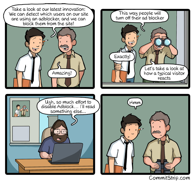 Fun: The latest innovation from the media | CommitStrip: block visitors that use adblockers.