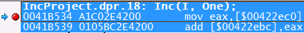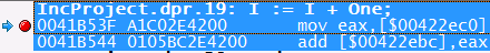 `Inc(I)` versus `I := I + 1;` in Delphi – they’re the same, but not atomic per se.