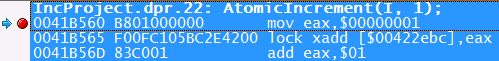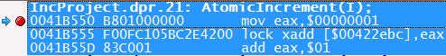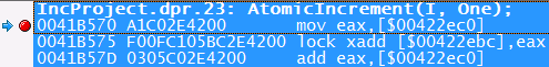 Inc(I);andI := I + 1;are atomic when using constant increments. - Neither are atomic when using increments from variables.