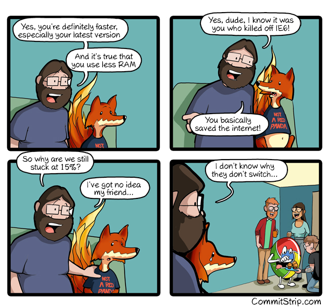 Most of my browser life is in Chrome, but the memory consumption and CPU usage has increased so much over time so it, err, become less than optimal.