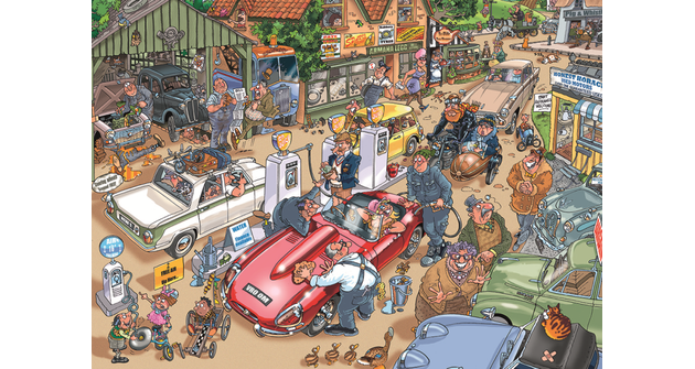 Imagine how the petrol station might look today. The cars will have changed, the fuel will have increased in price, but what about other things? Imagine the differences, and the similarities, between then and now.This is the scene you have to puzzle.