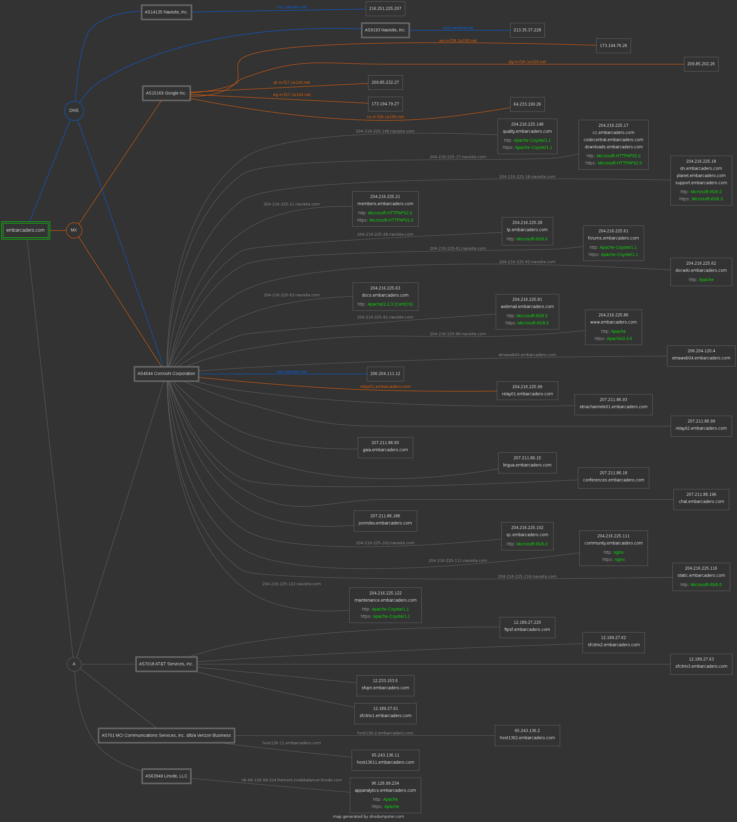This is preliminary work based on my own lists of Embarcadero endpoints combined with some research like [WayBack] dnsdumpster embarcadero.com.png and [WayBack] IdentIPSpy