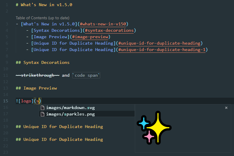 Boy, I love this so much: [WayBack] vscode-markdown/CHANGELOG.md at master · neilsustc/vscode-markdown · GitHub