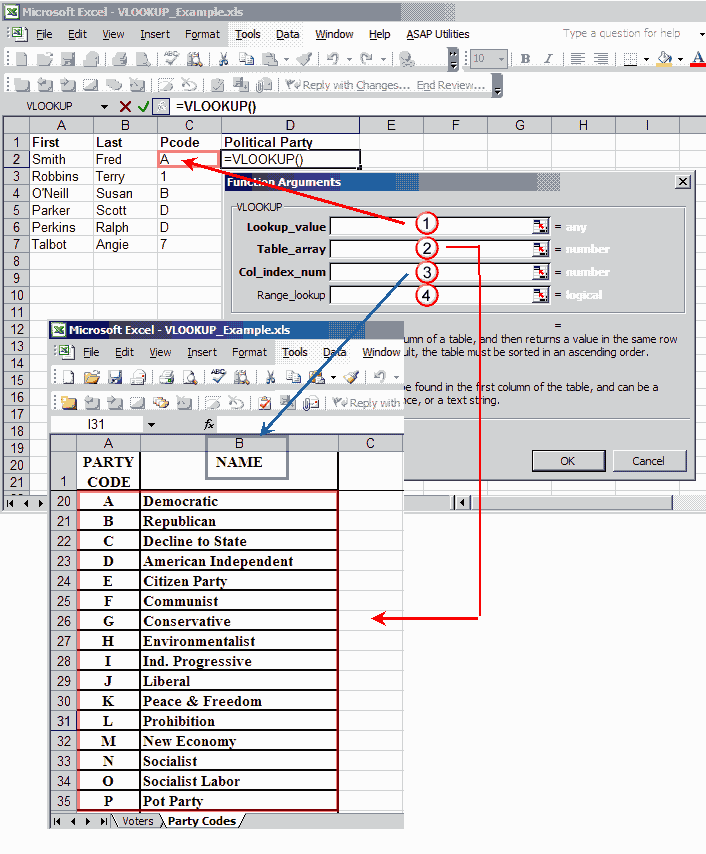 Excel VLOOKUP tutorial with an example spreadsheet & video. The article shows how to lookup the values from one column to use in another worksheet column.
