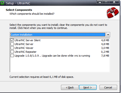 - I only needed the “Ultra VNC Server Silent” installation (see screenshot below).