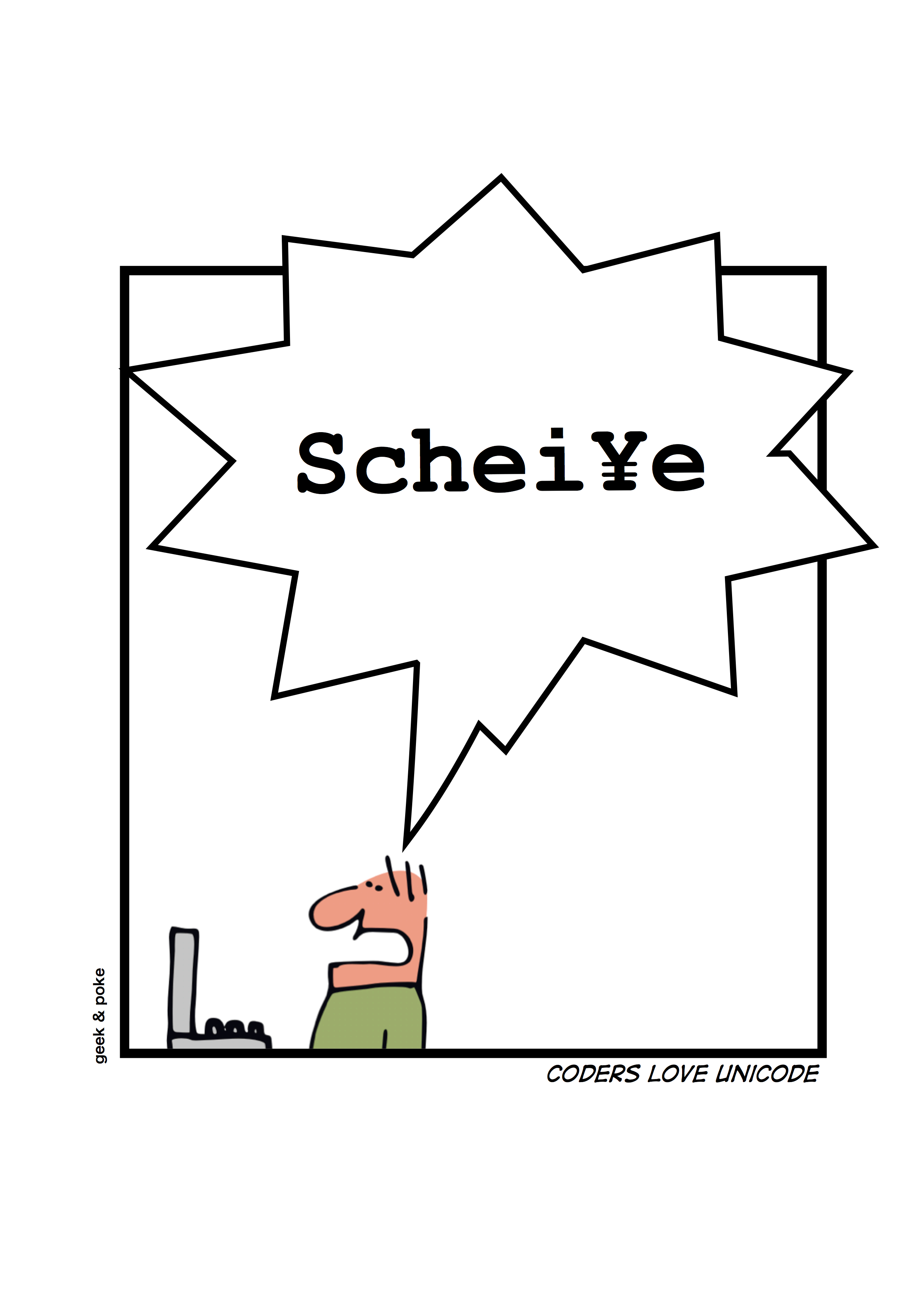 Reminds me of [WayBack] Schei¥e – [WayBack] Geek And Poke: Coders Love Unicode: For non Germans: Scheiße = shit, crap Tweet