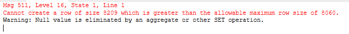 Msg 511, Level 16, State 1, Line 1 Cannot create a row of size 8061 which is greater than the allowable maximum row size of 8060. The statement has been terminated.