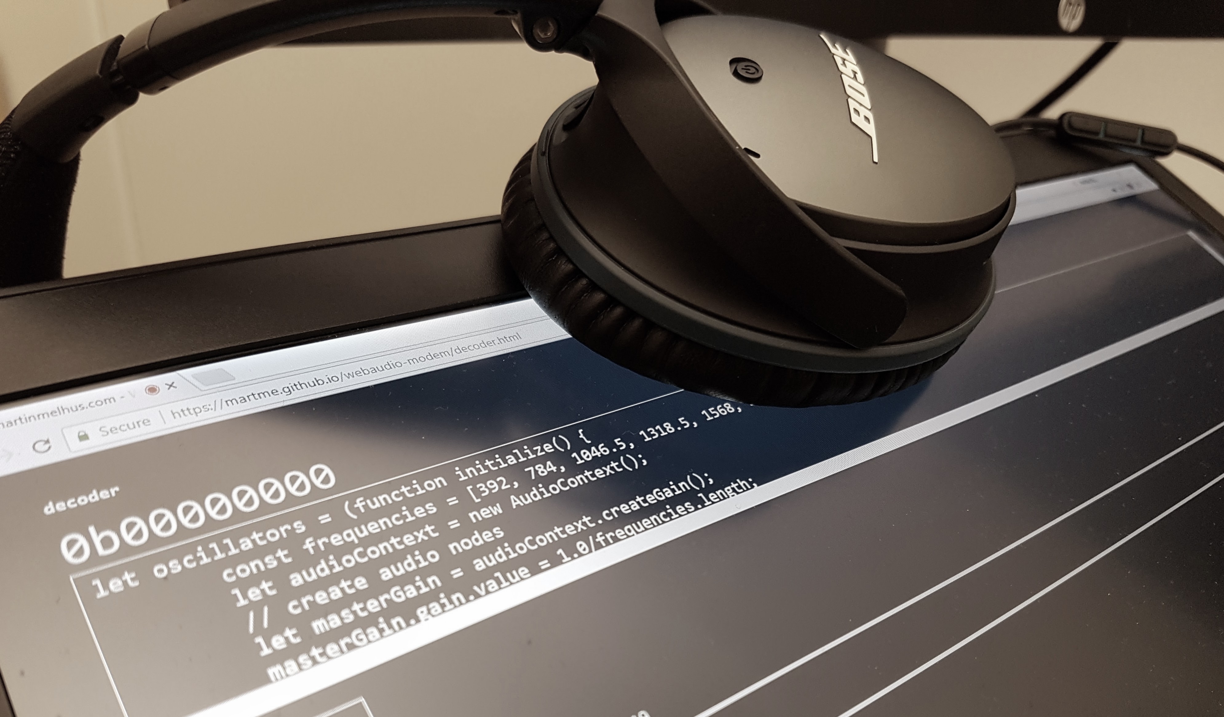 What do you do when you cannot copy text between computers due to lack of internet connectivity? I built a modem using the Web Audio API, allowing data transfer via audio.