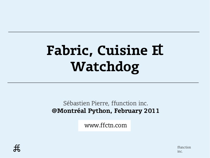 For my reading list: [WayBack] Fabric, Cuisine and Watchdog for server administration in Python.