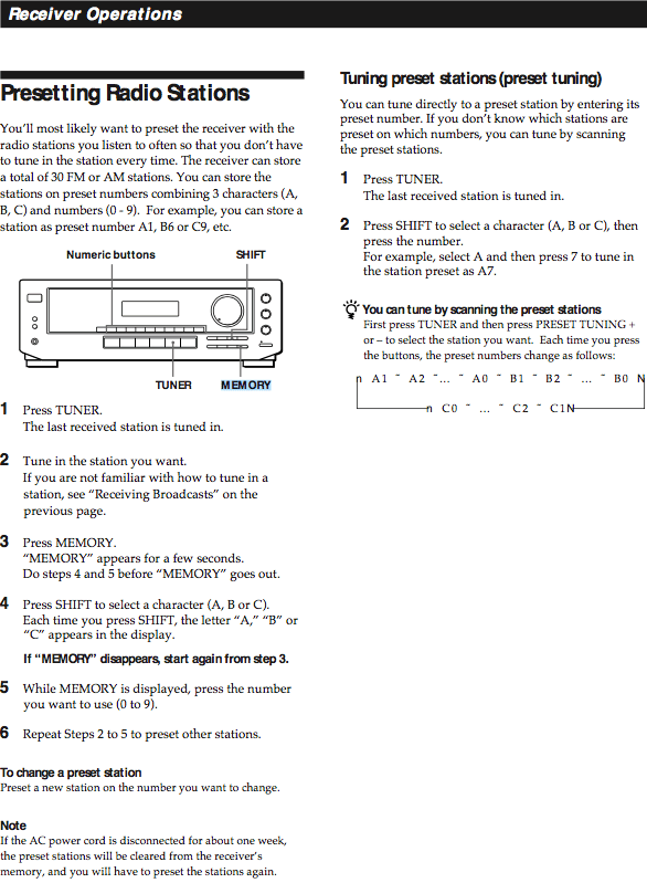 Sony STR-DE205 Receiver – storing FM stations into memory