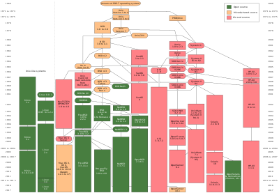 The graph with Apple Mac OS X / OS X / Mac OS versions cannot do without a graph showing the BSD and Unix inheritance.