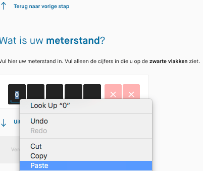 [WayBack] Jeroen Pluimers Twitterissä: “Bij email adres werkt plakken weer wel (gelukkig, het zijn maar 40 karakters), maar er mist een cruciale stap: meternummer. Die controle is voor adressen met meerdere meters ontzettend belangrijk. Vroeger werd dat wel gecontroleerd. Het invoerproces is dus een achteruitgang.”