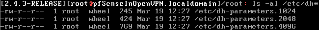 This means they can potentially be re-used as an attack-vector, so you need to manually re-generate them as per [WayBack] DH Parameters – pfSense Documentation by using /usr/bin/openssl dhparam