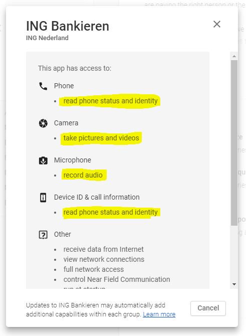 - [WayBack] Roderick Gadellaa on Twitter: “@ingnl Ik begrijp dat jullie gaan stoppen met TAN codes. Juich ik toe, 2FA met sms is behoorlijk lek. Maar nu moet ik jullie app gaan gebruiken. Ik werp 1 blik op de permissions die jullie app wil en denk: Neen.… “