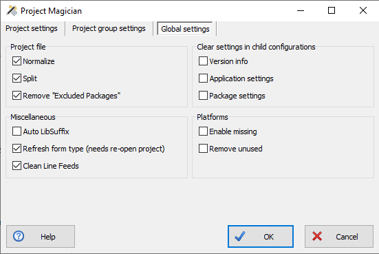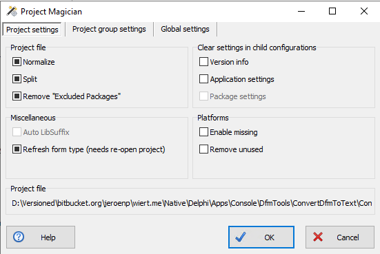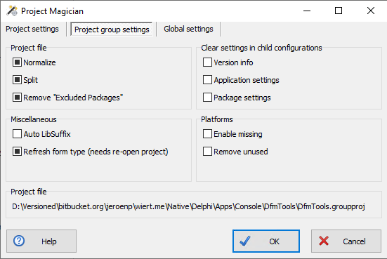 Project Magician adds more functionality, including the ability to specify settings on project, project group and global levels. An explanation of settings is at [WayBack] Keep Your Project Files Clean With Project Magician – The Art of Delphi Programming.
