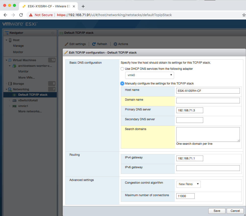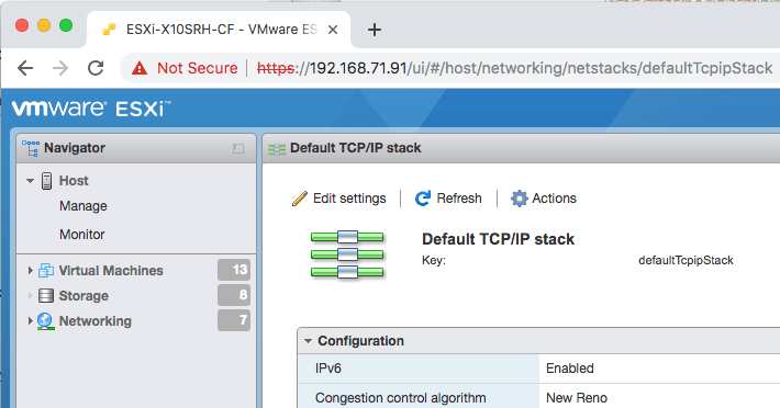 - Web interface, at 192.168.71.91/ui/#/host/networking/netstacks/defaultTcpipStack: