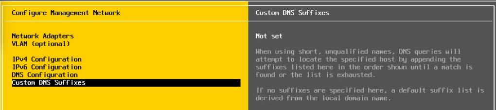 esxcli network ip dnsnamespace includes two namespaces.esxcli network ip dns searchincludes commands for DNS search domain configuration.esxcli network ip dns serverincludes commands for DNS server configuration.