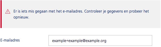 1. Toch jammer dat valide email adressen met een plus-teken erin weigert.