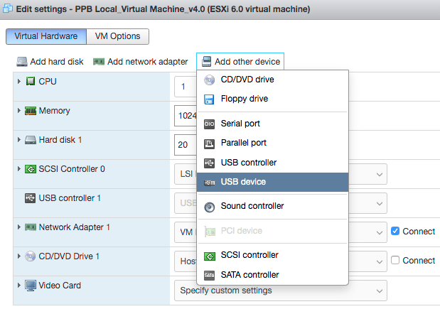 • To resolve this, plug in the USB cable, and retry adding the USB device to the VM.