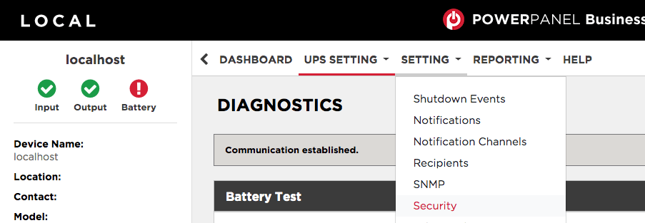 • Use Local (Agent) if you connect the computer to the UPS with a USB or Serial cable. Local (Agent), which is the primary means of communication for a basic setup between a computer and the UPS, supports a limitless number of clients.