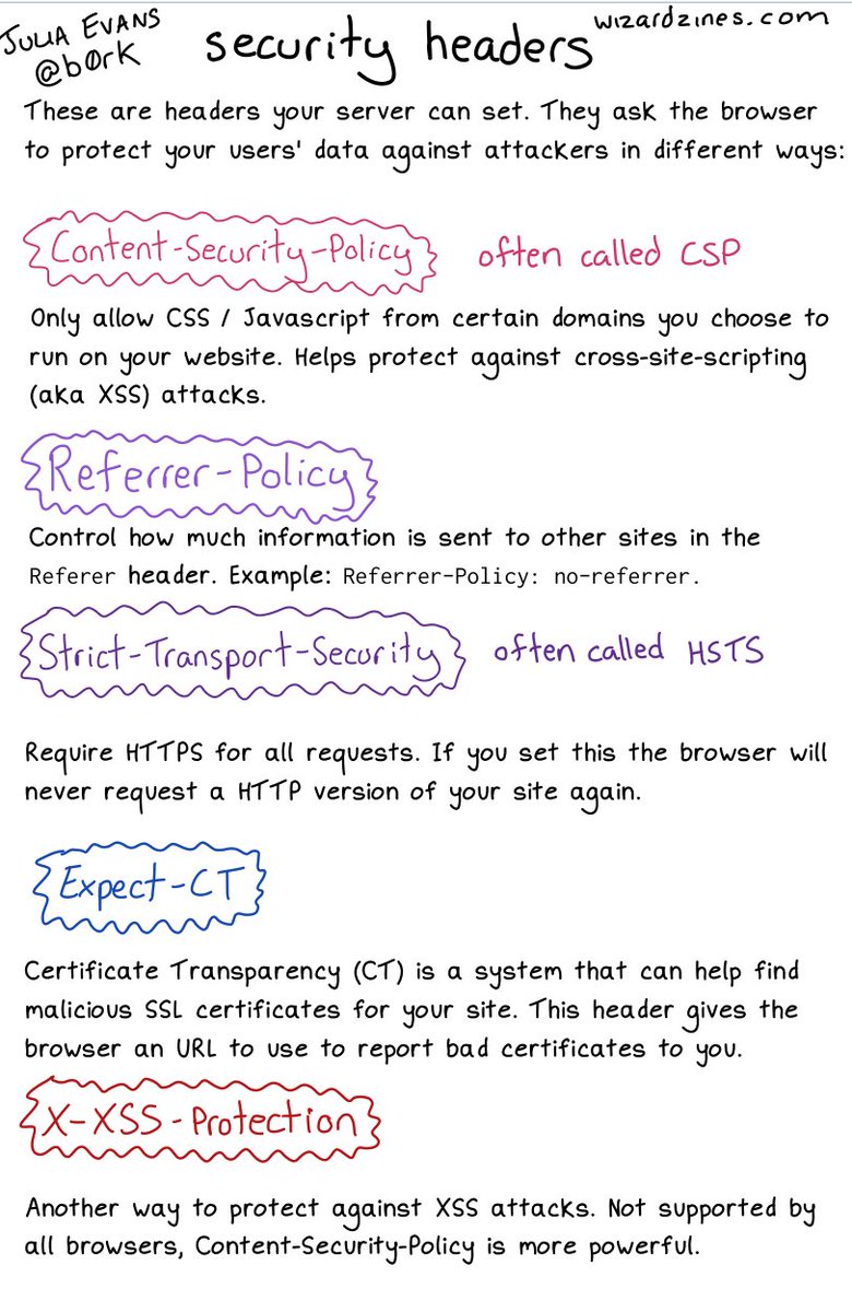 Many http headers via 🔎Julia Evans🔍 on Twitter: “some security headers… “