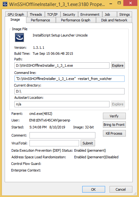 After the reboot, the installer is being run automatically, but with an extra parameter: