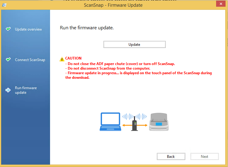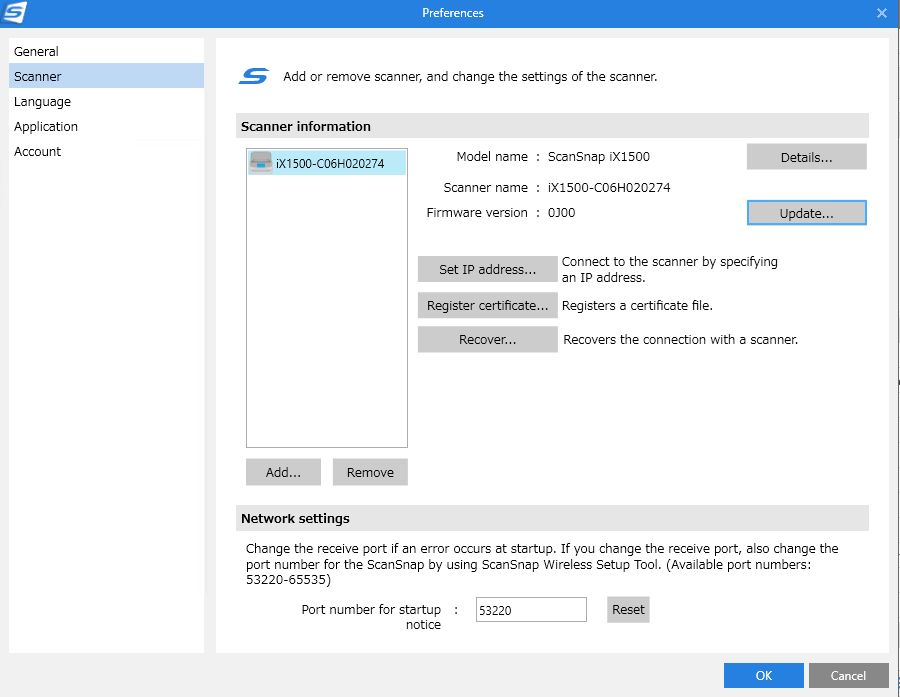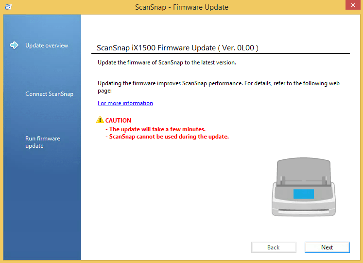 In the preferences, you can update the scanner firmware. This looks like a simple process: