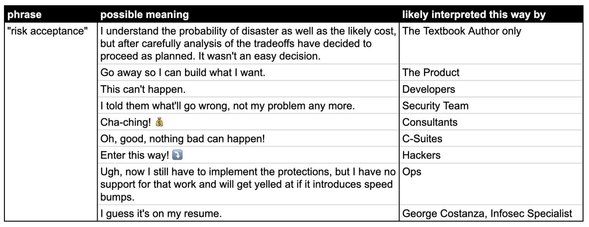 [Archive.is] Jan Schaumann on Twitter: “The secret language of coders, part N of many. Today: “risk acceptance”… “