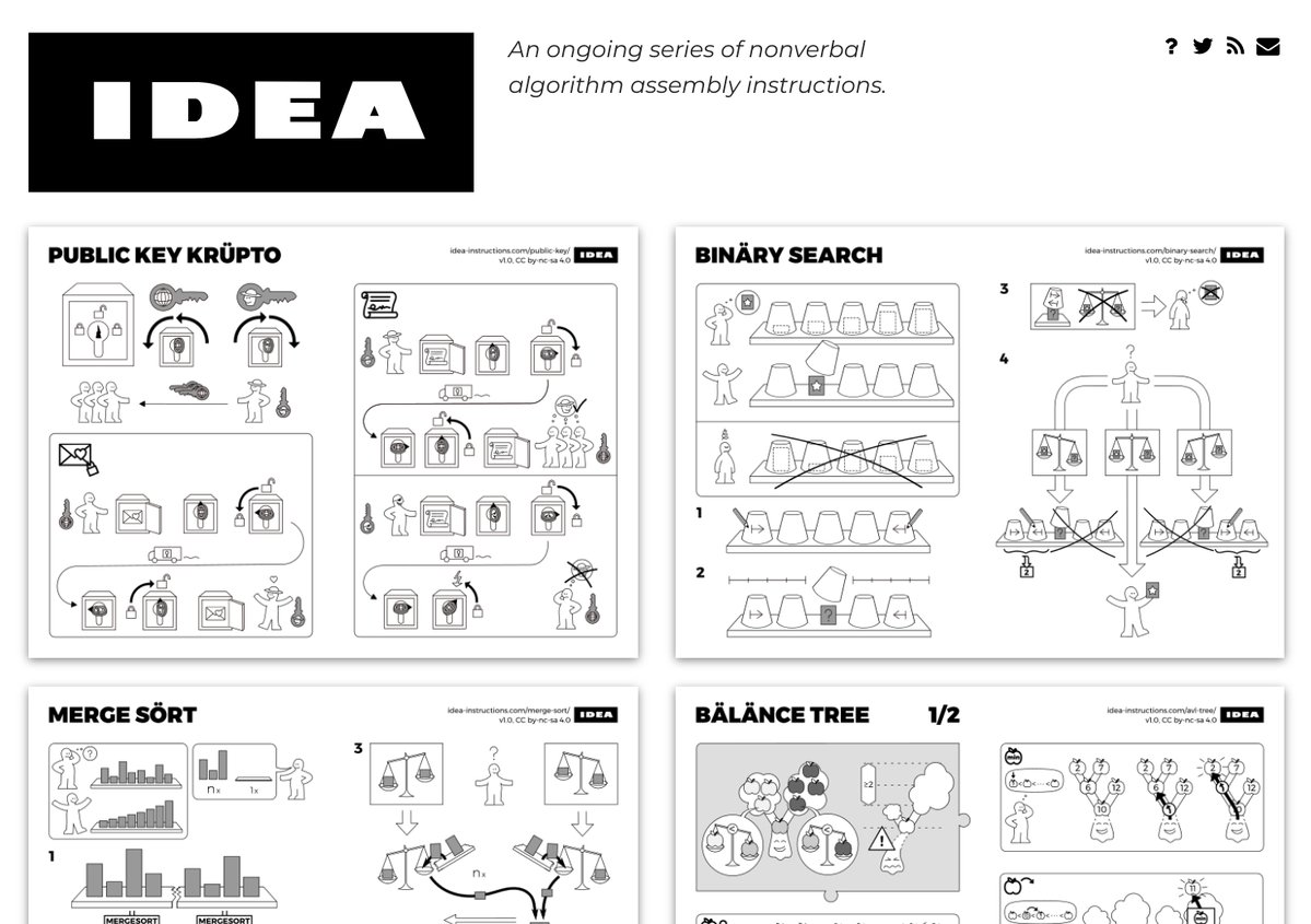 I wonder how many new algorithms were added, as the first 6 were really impressive: [WayBack] IDEA on Twitter: “Excited to announce the IDEA project – an ongoing series of nonverbal algorithm assembly instructions: https://t.co/zOAyfOAv3l… https://t.co/epQfBBdzdF”