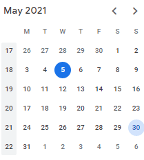 - Select the date belonging to the last weekday of a month, in this case the 30th of May in 2021: