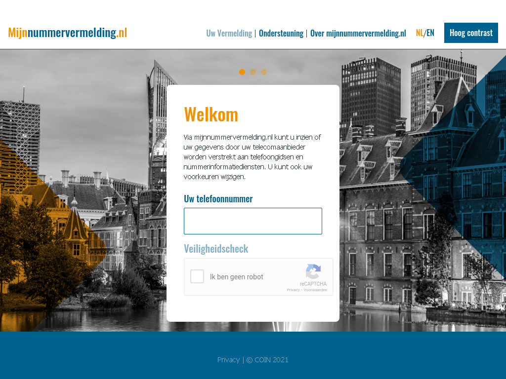 Via mijnnummervermelding.nl kunt u inzien of uw gegevens door uw telecomaanbieder worden verstrekt aan telefoongidsen en nummerinformatiediensten. U kunt ook uw voorkeuren wijzigen.