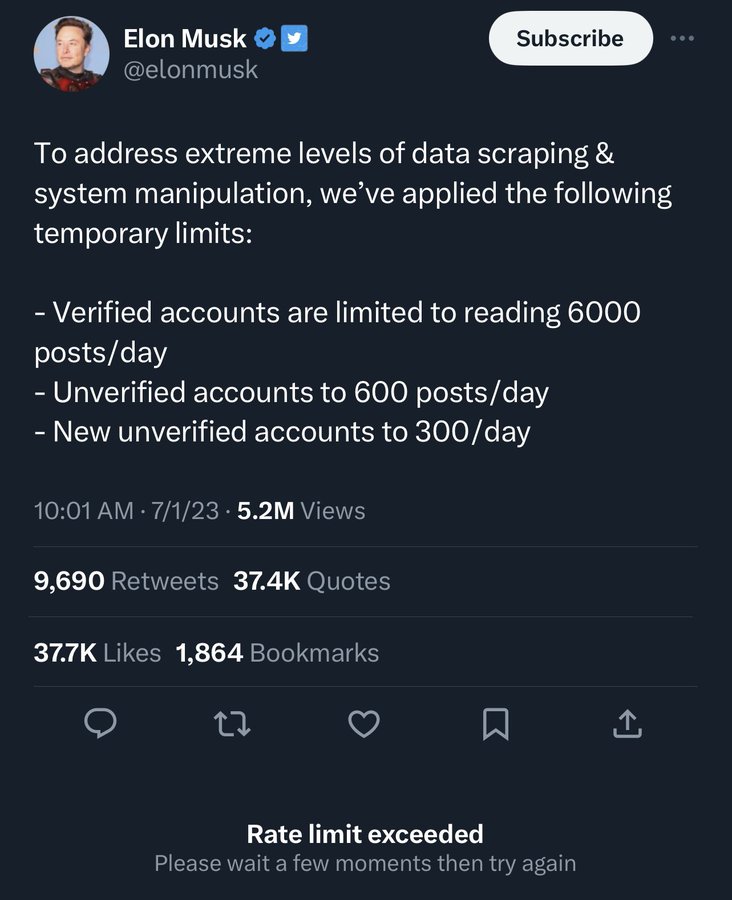 To address extreme levels of data scraping & system manipulation, we’ve applied the following temporary limits: