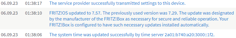 FRITZ!OS updated to 7.57. The previously used version was 7.29. The update was designated by the manufacturer of the FRITZ!Box as necessary for secure and reliable operation. Your FRITZ!Box is configured to have such necessary updates installed automatically.
