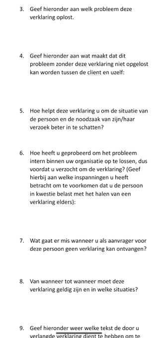 9. Geef hieronder weer welke tekst de door u verlangde verklaring dient te hebben om te deze persoon geen verklaring kan ontvangen?