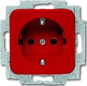 German abbreviation EDV (Elektronische Datenverarbeitung) stands for electronic data processing. Red sockets are connected to a separate network. When somewhere in an office a broken piece of equipment blows a standard mains fuse, computers etc. plugged into red sockets remain in function. For additional safety surge protection and interruptible power supply systems can be added to the EDV network.