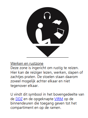 Symbolen in de trein voor de diverse soorten zones in coupés/rijtuigen