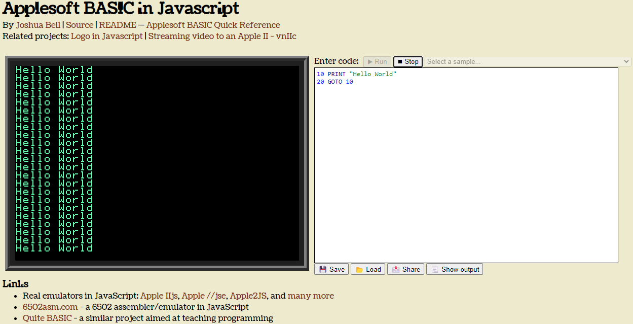 - Live: [Wayback/Archive] Applesoft BASIC in JavaScript