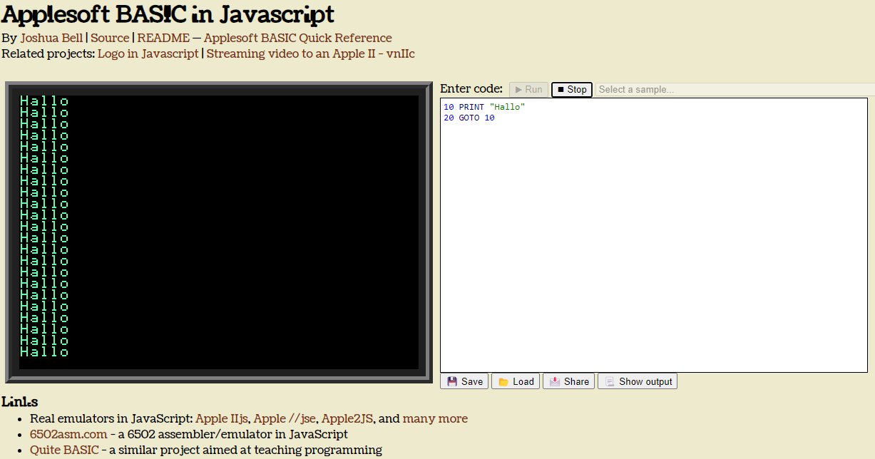 - Live: [Wayback/Archive] Applesoft BASIC in JavaScript