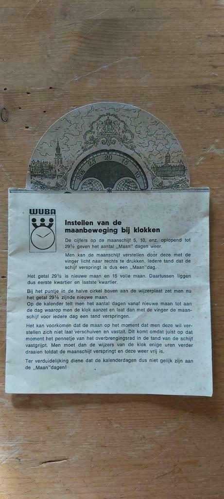 Een maancyclus duurt 29,5 dagen, vandaar twee manen op de maanschijf. Wij werken niet met halve tanden. De cijfers staan voor die bepaalde maandag van de cyclus. Als ik zo’n klok heb gerepareerd dan zorg ik er voor dat de maan na 12 uur s’nachts wordt verzet. De maan wordt een keer per 24 uur verzet. Als het uurwerk de maanschijf niet aan het verzetten is dan kan je die rustig door draaien. Als het niet gaat, niet forceren maar even wachten totdat het wel kan.