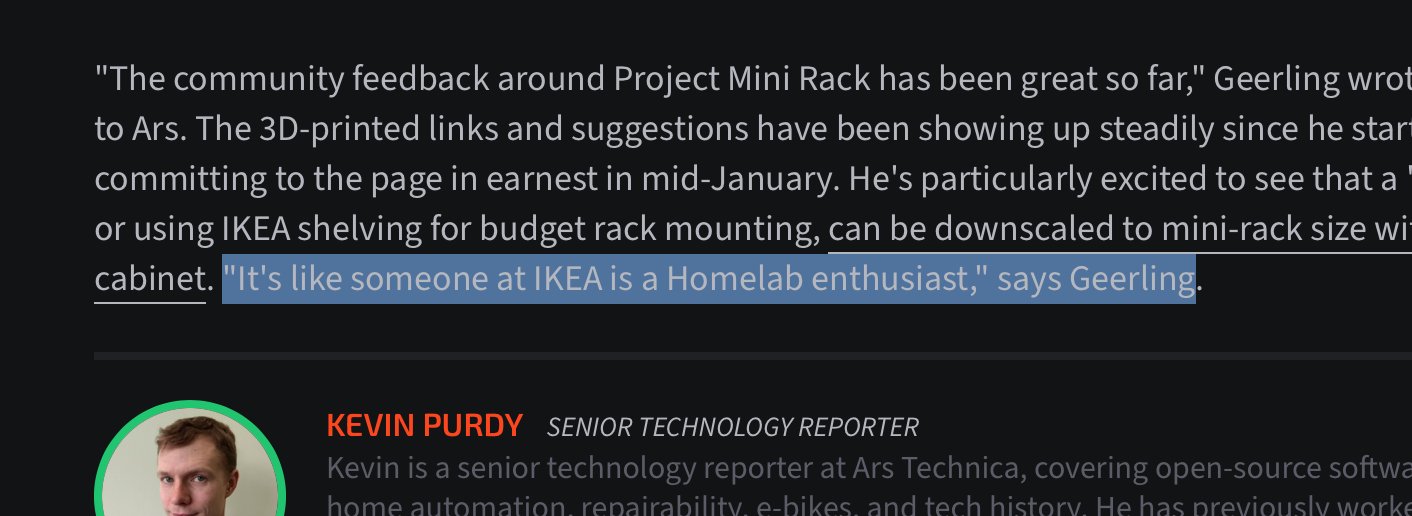 [WaybackSave/Archive] Jeff Geerling on X: “Indeed… there’s gotta be some nerd at @IKEA who’s ensuring certain furniture fits standard sized rackmount gear, right?”