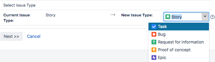 Since for Software projects, the default workflow Story might not be appropriate during the workflow, it makes sense to convert it.