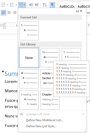- This involves creating a new list style called “Headings”, based on the numbered list style you like