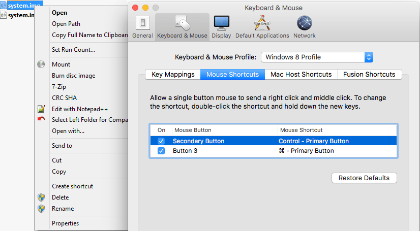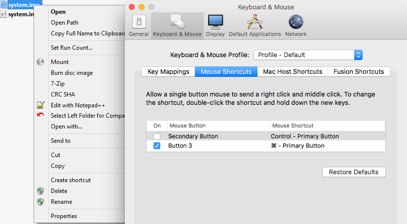 A while ago, I was surprised that in a Windows VM running under VMware Fusion, the Ctrl-Click performed a right click, despite me having changed the configuration: