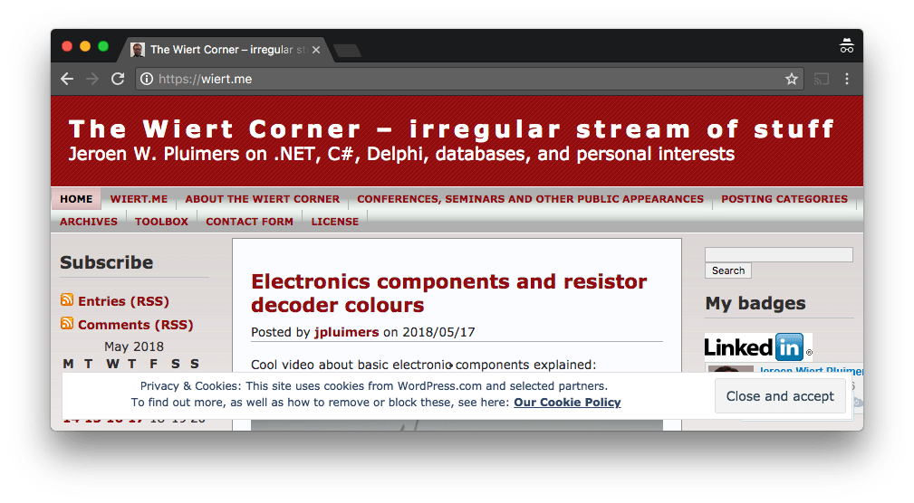 This personal blog is hosted as wiert.me and wiert.wordpress.com and operated by wordpress.com under the [WayBack] premium plan (you can compare plans at their [WayBack] pricing page).